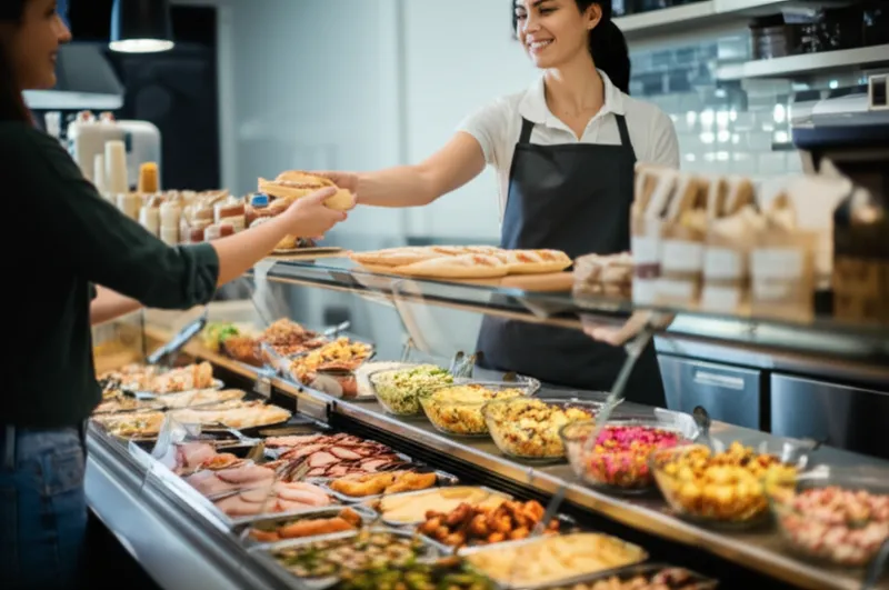 noun تحميل 🔗مشاركة طعام يباع في محل بقالة Food sold at a delicatessen. Examples : "My mom bought sandwiches and salads from the deli for our picnic. " اشترت أمي السندويشات والسلطات من محل البقالة لنزهتنا. food commerce دردشة مع الذكاء الاصطناعيلعبة المفرداتتدريب القراءة