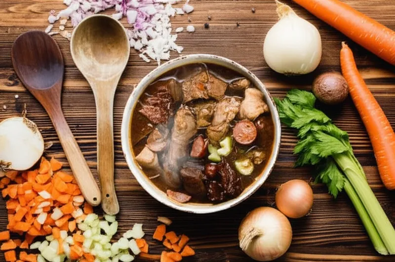 noun تحميل 🔗مشاركة خليط، هريس A hash of various kinds of meats, a ragout. Examples : "The potluck dish was a gallimaufry of leftover chicken, sausage, and vegetables. " كان طبق اليخنة عبارة عن خليط من الدجاج المتبقي والنقانق والخضروات. food دردشة مع الذكاء الاصطناعيلعبة المفرداتتدريب القراءة