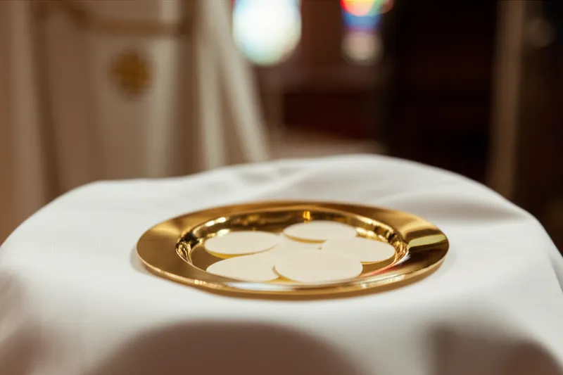noun تحميل 🔗مشاركة الصينية The plate used to hold the host during the Eucharist. Examples : "The priest carefully placed the consecrated host on the paten before distributing communion. " وضع الكاهن بعناية القربان المقدس على الصينية قبل توزيع المناولة. religion ritual theology دردشة مع الذكاء الاصطناعيلعبة المفرداتتدريب القراءة