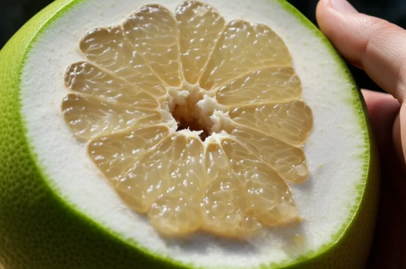 noun تحميل 🔗مشاركة الليمون الهندي The large fruit of the Citrus maxima (syn. C. grandis), native to South Asia and Southeast Asia, with a thick green or yellow rind, a thick white pith, and semi-sweet translucent pale flesh. Examples : "My mom bought a large, fragrant pomelo from the farmer's market, and we all enjoyed its sweet, slightly tangy flesh for dessert. " اشترت أمي ليمونة هندية كبيرة وعطرة من سوق المزارعين، واستمتعنا جميعًا بلحمها الحلو والحامض قليلًا كحلوى. fruit food plant biology دردشة مع الذكاء الاصطناعيلعبة المفرداتتدريب القراءة