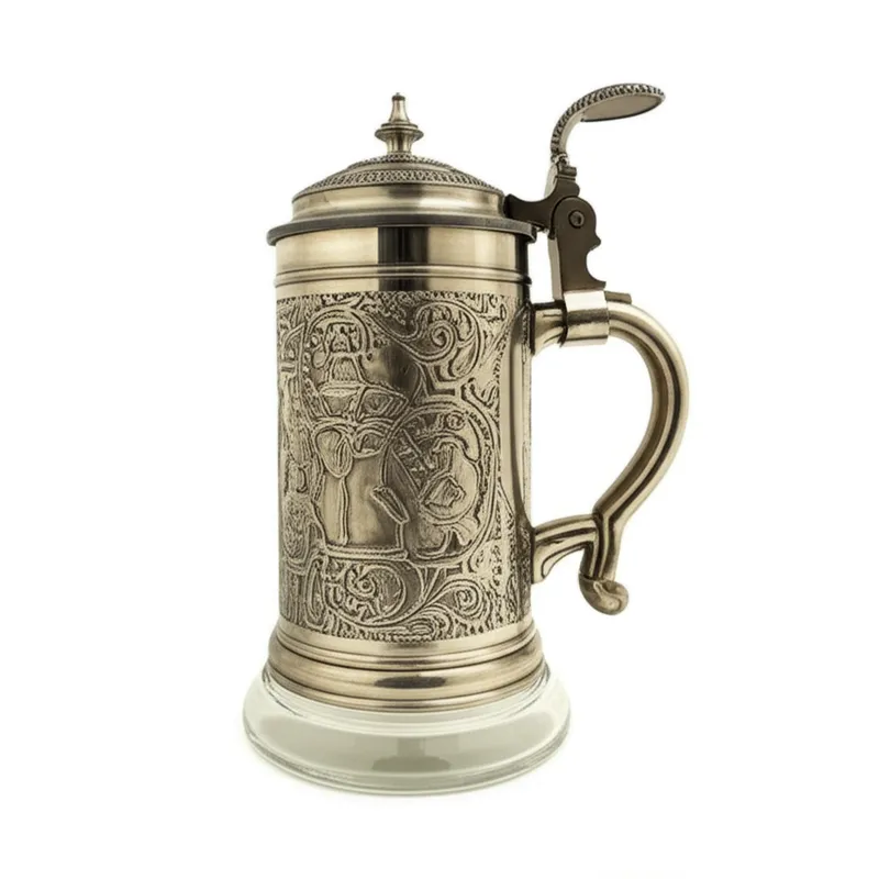 noun تحميل 🔗مشاركة إبريق، قدح كبير A large drinking vessel, sometimes of pewter, sometimes with a glass base, with one handle and often a hinged cover. Examples : "After a long day of work at the medieval-themed restaurant, the servers collected the tankards from the tables. " بعد يوم طويل من العمل في المطعم ذي الطابع القروسطي، جمع النوادل الأباريق من الطاولات. drink utensil item دردشة مع الذكاء الاصطناعيلعبة المفرداتتدريب القراءة