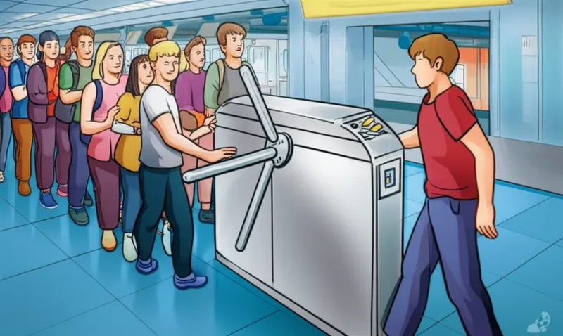 noun تحميل 🔗مشاركة بوابة دوارة A rotating mechanical device that controls and counts passage between public areas, especially one that only allows passage after a charge has been paid. Examples : "To enter the school, students must use the turnstile and pay the entrance fee. " للدخول إلى المدرسة، يجب على الطلاب استخدام البوابة الدوارة ودفع رسوم الدخول. machine device utility building architecture system technology traffic area دردشة مع الذكاء الاصطناعيلعبة المفرداتتدريب القراءة