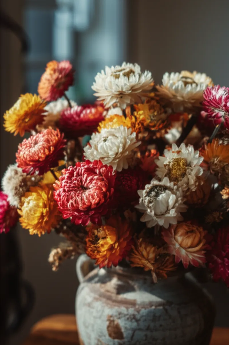 noun Herunterladen 🔗Teilen Immortellen, Strohblumen Any of various papery flowers, often dried and used as decoration. Examples : "My grandmother always had a vase filled with immortelles on her mantelpiece, their dried petals retaining their vibrant colors for years. " Meine Großmutter hatte immer eine Vase mit Immortellen auf ihrem Kaminsims stehen, deren getrocknete Blütenblätter jahrelang ihre leuchtenden Farben behielten. plant material art style Mit KI chattenVokabelspielÜbung: Lesen