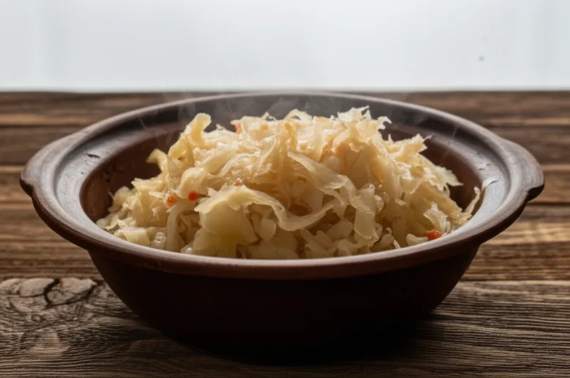nounHerunterladen🔗TeilenSauerkrautA dish made by fermenting finely chopped cabbage.Beispiele:"My grandma makes the best kraut in the world; it's always tangy and delicious with sausages. "Meine Oma macht das beste Sauerkraut der Welt; es ist immer würzig und köstlich mit Würstchen.foodvegetableMit KI chattenVokabelspielÜbung: Lesen