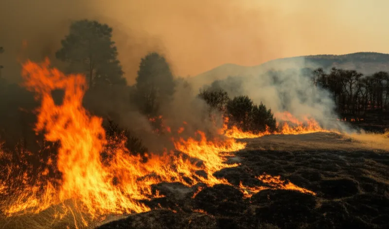 noun Download 🔗Share A rapidly spreading fire, especially one occurring in a wildland area. Examples : "The wildfire destroyed many trees in the forest. " environment disaster nature event Chat with AIVocabulary GamePractice Reading