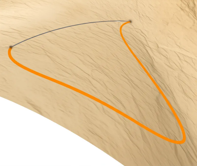 noun Descargar 🔗Compartir Geodésica The shortest line between two points on a specific surface. Examples : "The ant followed the geodesic on the orange peel, a slightly curved path representing the shortest distance to the sugar. " La hormiga siguió la geodésica en la cáscara de naranja, un camino ligeramente curvo que representaba la distancia más corta al azúcar. math physics Chat con IAJuego de vocabularioPracticar lectura