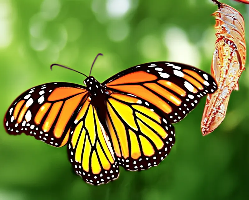 Después deun período de pupación dentro desus capullos, las hermosas mariposas monarca emergieron como imagos completamente formadas, listas paravolary reproducirse.