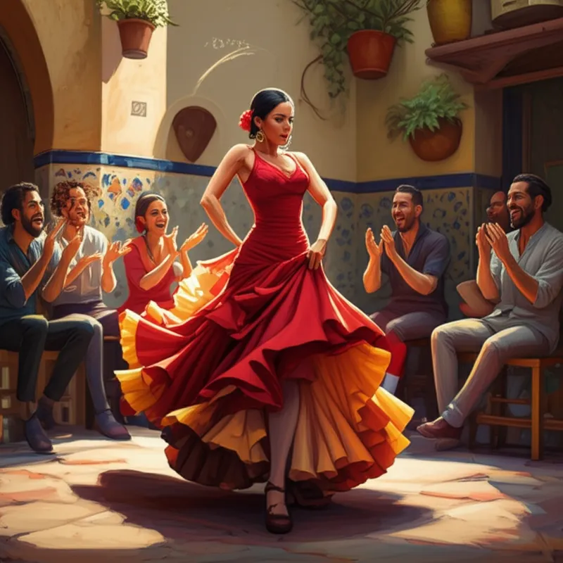 noun Descargar 🔗Compartir Un baile andaluz animado A lively Andalusian dance. Examples : "The flamenco dancers burst onto the stage in a whirl of color, launching into a passionate jaleo that had the audience clapping along. " Los bailarines de flamenco irrumpieron en el escenario en un torbellino de color, lanzándose a un apasionado baile andaluz que hizo que el público aplaudiera. culture dance music entertainment Chat con IAJuego de vocabularioPracticar lectura