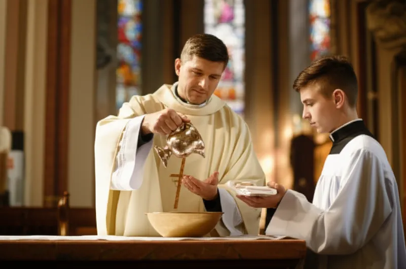 noun Descargar 🔗Compartir Lavado de manos en el ofertorio A ritual involving the washing of one's hands at a church's offertory before handling the Eucharist. Examples : "During the solemn High Mass, the priest performed the lavabos at the side of the altar before preparing the bread and wine. " Durante la misa solemne, el sacerdote realizó el lavado de manos en el ofertorio al lado del altar antes de preparar el pan y el vino. ritual religion theology Chat con IAJuego de vocabularioPracticar lectura