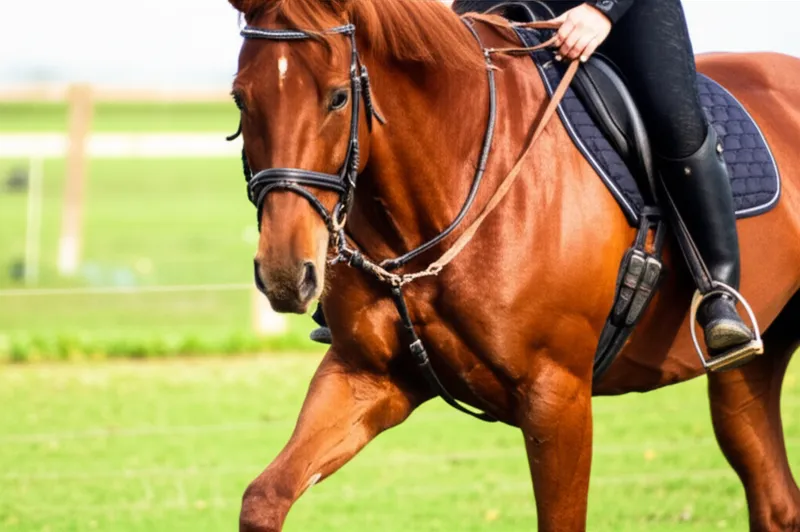 La cabeza del caballo se estaba levantando demasiado, así queel jinete ajustó la martingala para mantenerla ala altura correcta y tener un mejor control.