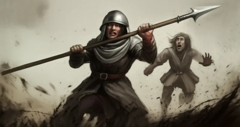 Durante la recreación histórica, el soldado tuvo cuidado deno herir realmente a su oponente mientras lo atacaba conla parte romade su lanza de utilería.
