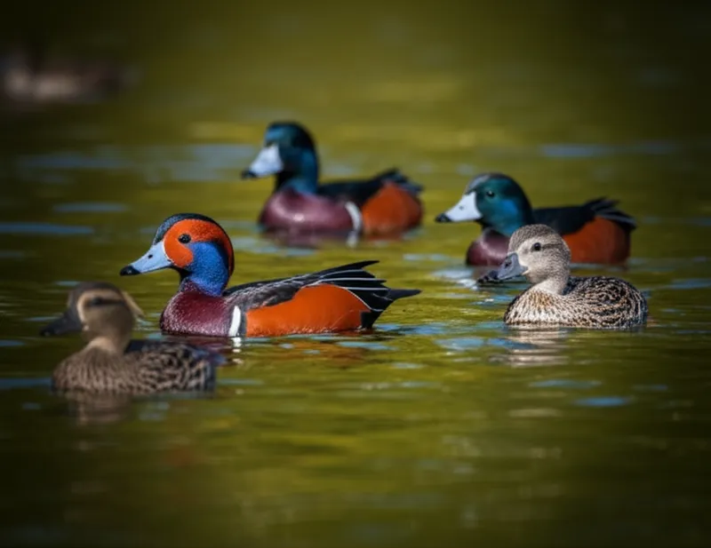 noun Descargar 🔗Compartir Cercetas Any of various small freshwater ducks of the genus Anas that are brightly coloured and have short necks. Examples : "Simple Sentence: "We saw a group of teals swimming in the pond at the park." " Vimos un grupo de cercetas nadando en el estanque del parque. animal bird nature biology environment Chat con IAJuego de vocabularioPracticar lectura