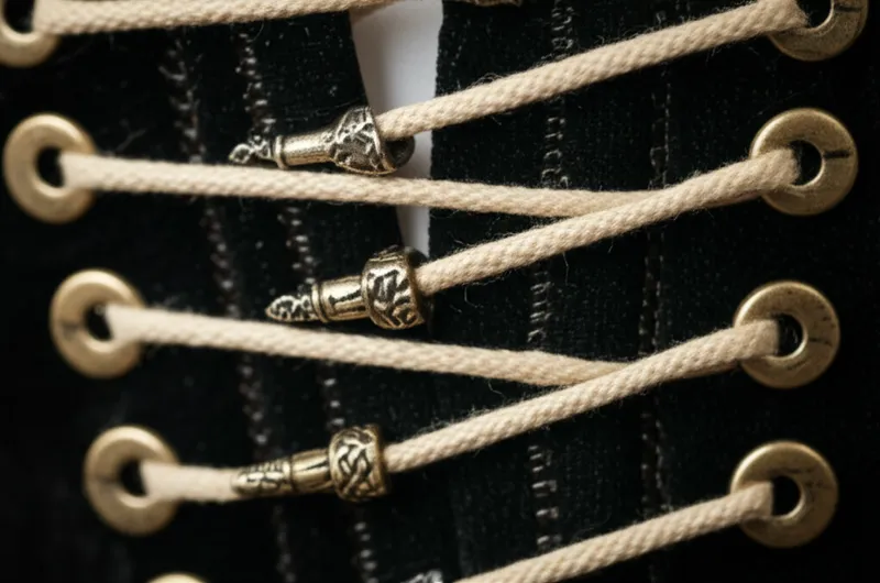noun Télécharger 🔗Partager Aiguillette A tip, originally of metal and often decorative, on a ribbon or cord that makes lacing two parts of a garment or garments together easier, as in corset lacings, "points" (lacing hose or trousers to jacket or doublet) or sleeves to a bodice. Examples : "The historical reenactor meticulously threaded the corset's lacings through the aiguillette at the end, making it easier to tighten the bodice. " Le reconstituteur historique a méticuleusement enfilé les lacets du corset à travers l'aiguillette à l'extrémité, ce qui a facilité le serrage du corsage. wear style material appearance item thing Chat avec IAJeu de vocabulairePratiquer la lecture