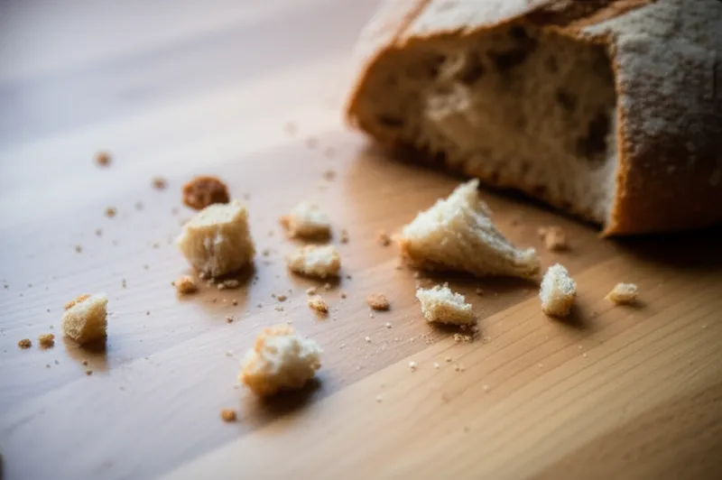 noun Télécharger 🔗Partager Miettes de pain (chiefly in the plural) A tiny piece of bread, either one that falls from bread as it is cut or eaten, or one made deliberately by crumbling bread. Examples : "After making the sandwiches, there were breadcrumbs all over the counter. " Après avoir fait les sandwichs, il y avait des miettes de pain partout sur le comptoir. food item Chat avec IAJeu de vocabulairePratiquer la lecture
