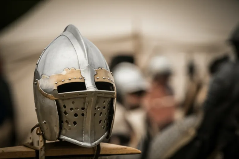 noun Télécharger 🔗Partager Burgonnet A light helmet worn by infantrymen, bearing a crest and hinged cheekpieces, but typically without a visor. Examples : "The historical reenactor polished his burgonet, its cheekpieces gleaming, before putting on his other infantry gear. " Le reconstituteur historique a poli son burgonnet, dont les joues brillaient, avant de mettre son autre équipement d'infanterie. military weapon wear history Chat avec IAJeu de vocabulairePratiquer la lecture