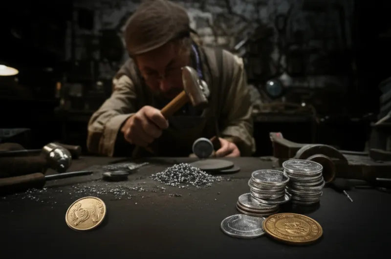 noun Télécharger 🔗Partager Faussaire, monnayeur A person who makes coins (often counterfeit coins). Examples : "The police arrested the coiner who was producing fake fifty-dollar bills in his basement. " La police a arrêté le faussaire qui fabriquait de faux billets de cinquante dollars dans son sous-sol. person job history economy business finance Chat avec IAJeu de vocabulairePratiquer la lecture