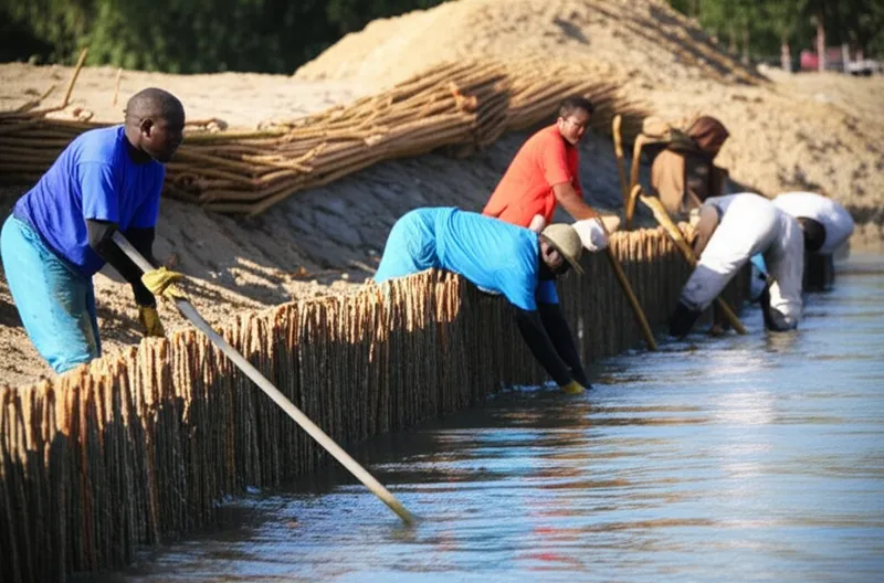 noun Télécharger 🔗Partager Fascine (fortification) A cylindrical bundle of small sticks of wood, bound together, used in raising batteries, filling ditches, strengthening ramparts, and making parapets; also in revetments for river banks, and in mats for dams, jetties, etc. Examples : "The engineers used a long fascine to reinforce the eroding river bank and prevent further damage to the road. " Les ingénieurs ont utilisé une longue fascine pour renforcer la berge en érosion et empêcher d'autres dommages à la route. military architecture material building technical Chat avec IAJeu de vocabulairePratiquer la lecture