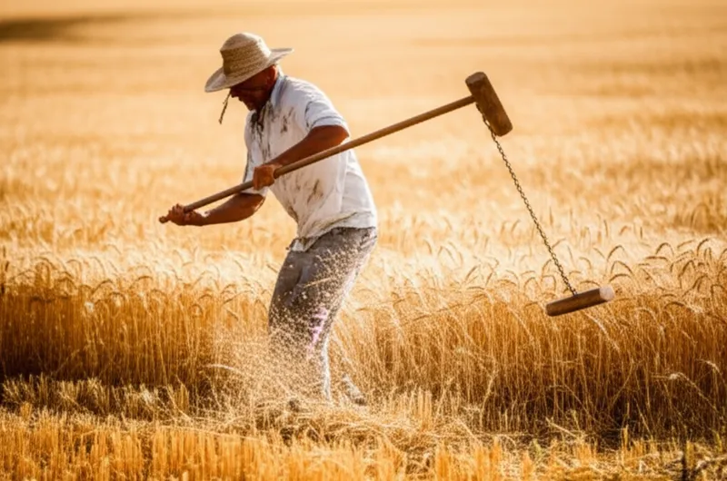 verb Télécharger 🔗Partager Battre, frapper To thresh. Examples : "The farmer flailed the wheat stalks to separate the grains from the straw. " Le fermier battait les tiges de blé pour séparer les grains de la paille. agriculture action process Chat avec IAJeu de vocabulairePratiquer la lecture