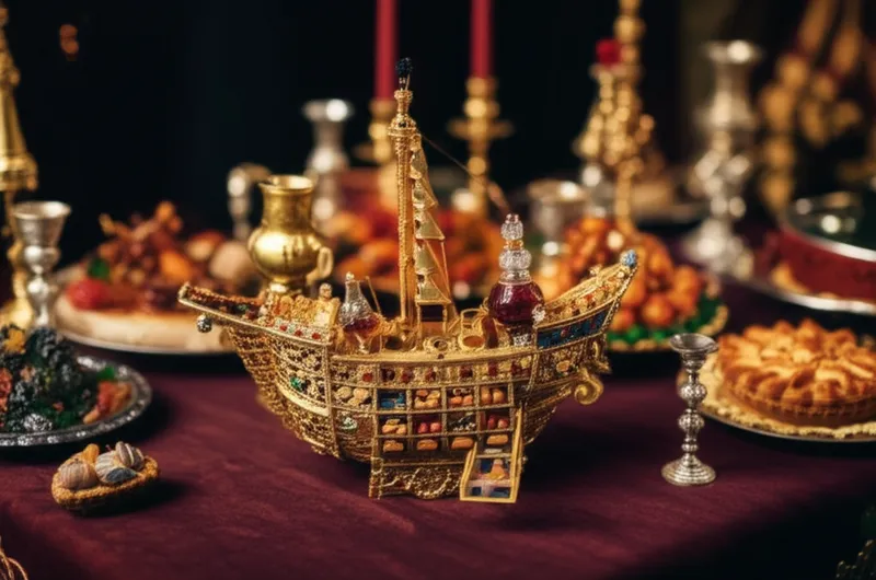 noun Télécharger 🔗Partager Un ornement de table extravagant et un récipient utilisé au Moyen Âge et à la Renaissance, en forme de navire An extravagant table ornament and container used in the Middle Ages and Renaissance, made in the shape of a ship. Examples : "At the medieval banquet, the king proudly displayed a silver nefs, shaped like a galleon, which held his salt and spices. " Lors du banquet médiéval, le roi a fièrement exposé un nefs en argent, en forme de galion, qui contenait son sel et ses épices. art utensil nautical history royal food tradition Chat avec IAJeu de vocabulairePratiquer la lecture