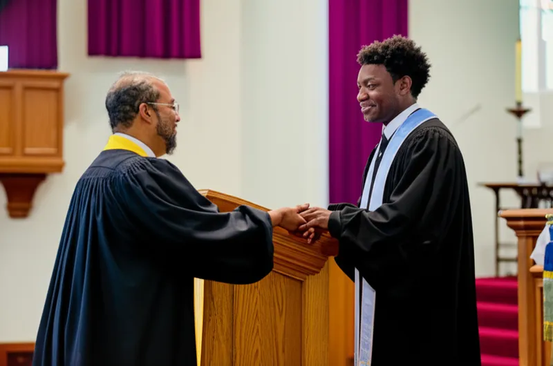 verb डाउनलोड 🔗साझा करें पादरी का कार्य करना, पूजा में भाग लेना To function as a clergyman or as the officiant in church worship Examples : "The priest will minister to the congregation during Sunday mass. " पुरोहित रविवार के मास के दौरान मंडली के लिए पादरी का कार्य करेंगे। religion theology essential AI से चैट करेंशब्दावली खेलपढ़ने का अभ्यास