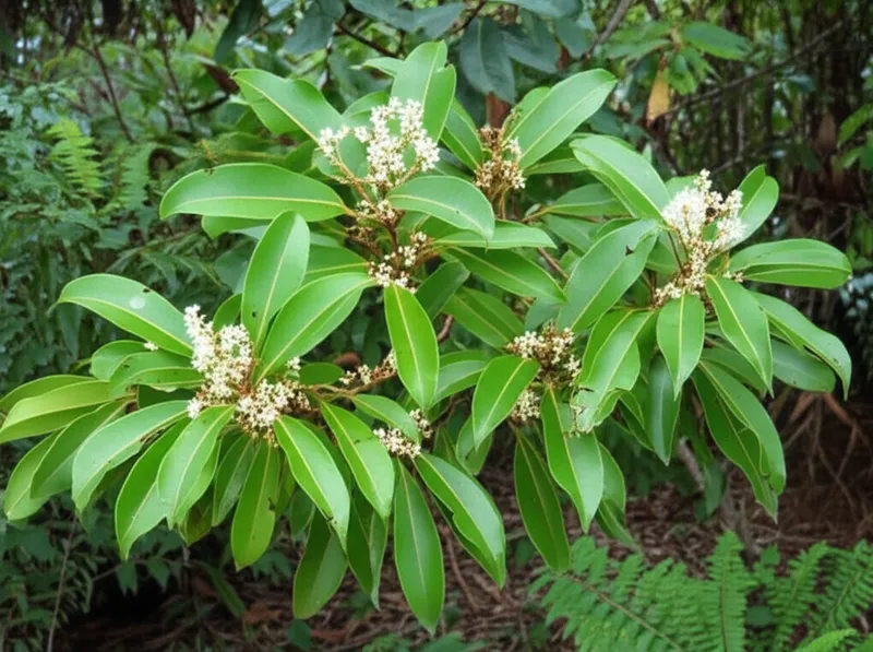 noun ダウンロード 🔗共有 滑らかな卵形の葉と小さな白い花の円錐花序を持つオーストラリアのフトモモ科の木(Syzygium smithii) An Australian myrtaceous tree (Syzygium smithii) with smooth ovate leaves and panicles of small white flowers. Examples : "The park bench was shaded by tall lilly-pillies, their glossy leaves providing a welcome escape from the sun. " 公園のベンチは背の高いリリーピリーの木陰にあり、その光沢のある葉が太陽から心地よい逃げ場を提供していました。 plant biology nature AIとチャット語彙ゲーム読解練習