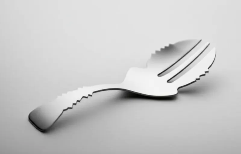 noun ダウンロード 🔗共有 スプーンフォーク、スポーク An eating utensil shaped like a spoon, the bowl of which is divided into tines like those of a fork, and so has the function of both implements; some sporks have a serrated edge so they can also function as a knife. Examples : "The school cafeteria only provides sporks, so you have to use them for everything from soup to salad. " 学校のカフェテリアではスプーンフォークしか提供されないので、スープからサラダまで、すべてにそれらを使わなければなりません。 utensil food item AIとチャット語彙ゲーム読解練習