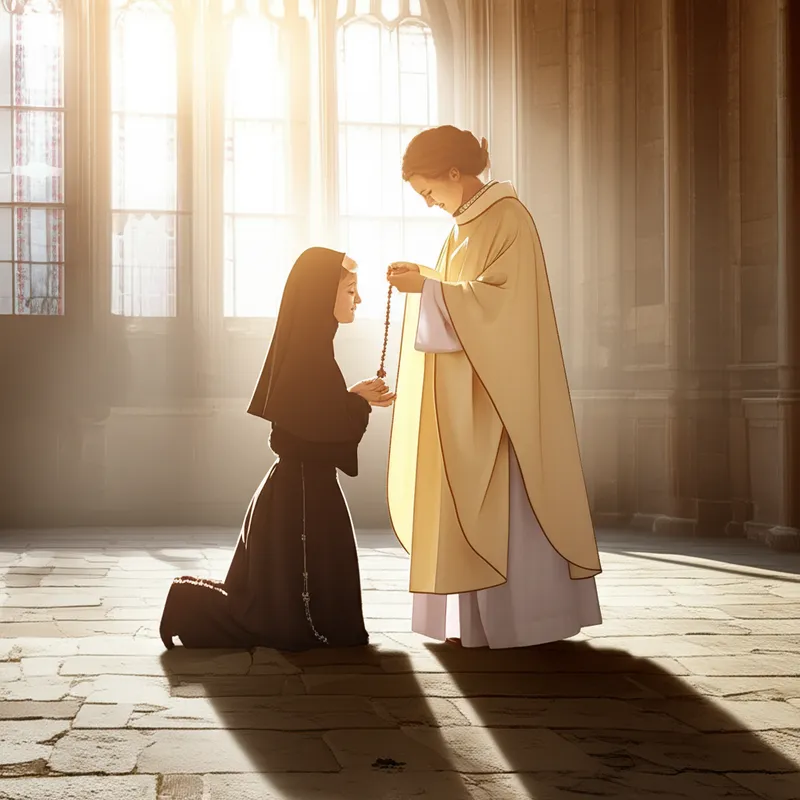 verb 다운로드 🔗공유 수도 서약을 받다, 수도원에 들어가게 하다 To administer the vows of a religious order to (someone); to admit to a religious order. (Chiefly in passive.) Examples : "Sister Agnes was professed into the Order of Saint Clare after years of training and discernment. " 아그네스 수녀는 수년간의 훈련과 분별력을 거쳐 성 클레어 수도회에 들어갔다. religion theology soul ritual AI와 채팅어휘 게임독해 연습