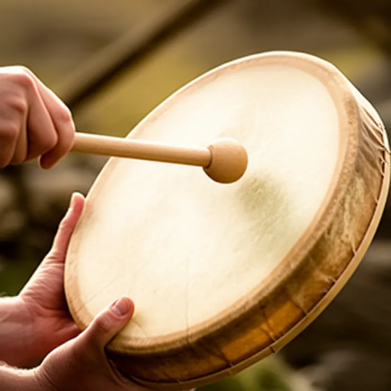 noun Скачать 🔗Поделиться Бодран A type of frame drum used in Celtic music which was traditionally played by being struck with an animal bone, or in modern times, a piece of wood. Examples : "The musician played a lively rhythm on the bodhran, its deep tones resonating through the pub. " Музыкант играл живой ритм на бодране, его глубокие тона резонировали по всему пабу. music utensil culture tradition entertainment sound Чат с ИИИгра со словамиПрактика чтения