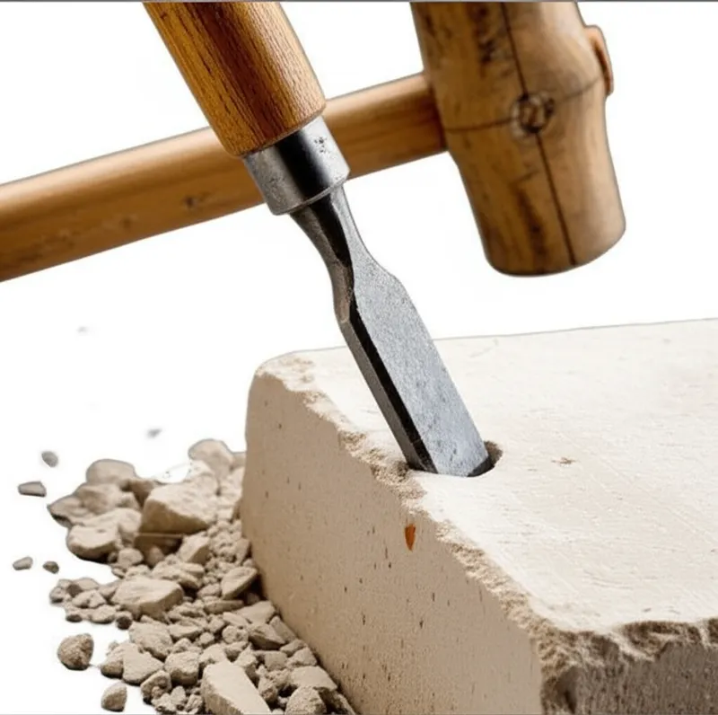 Скульптор использовал долото, чтобы тщательно придать форму мрамору.