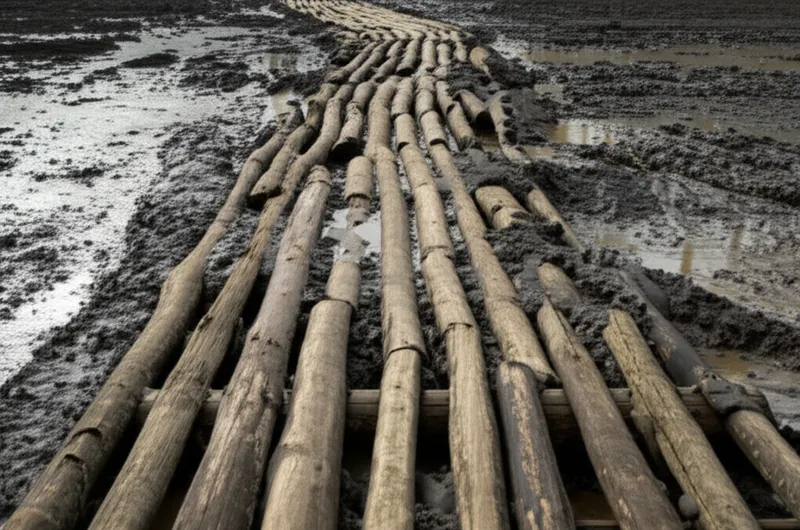 verb Скачать 🔗Поделиться настилать гать To make (a road) by laying down split logs or tree-trunks over a marsh, swamp etc. Examples : "The settlers corduroyed the muddy path through the forest, making it passable for their wagons. " Поселенцы настилали гать по грязной тропе через лес, делая ее проходимой для своих повозок. environment geology agriculture material building Чат с ИИИгра со словамиПрактика чтения