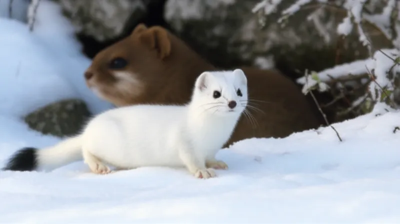 noun Скачать 🔗Поделиться Горностаи A weasel, Mustela erminea, found in northern latitudes; its dark brown fur turns white in winter (apart from the black tip of the tail). Examples : "In winter, the forest ranger often spots ermines with their white coats scurrying through the snow, only their black-tipped tails giving them away. " Зимой лесничий часто замечает горностаев в их белых шубках, снующих по снегу, выдают их только черные кончики хвостов. animal nature biology Чат с ИИИгра со словамиПрактика чтения