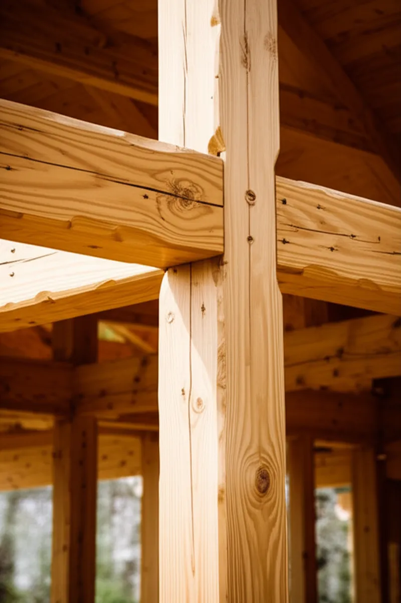 Плотник тщательно измерил расстояние между столбами, прежде чем прикрепить горизонтальный конструктивный элемент, чтобы обеспечить устойчивость новой стены сарая.