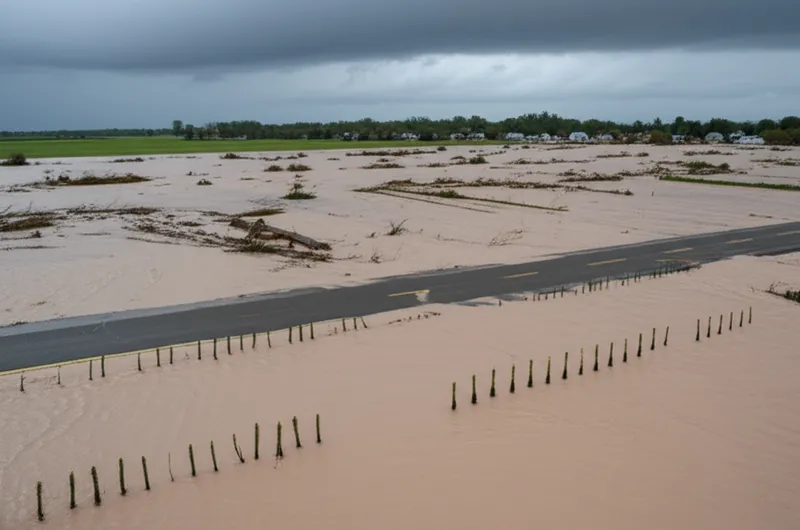 После сильного дождя город столкнулся с наводнением из-за переполнения реки.