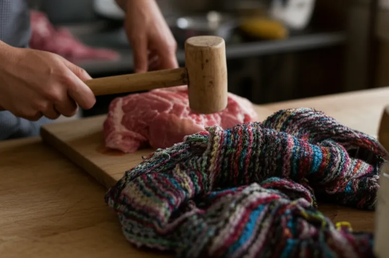 verb Скачать 🔗Поделиться Отбивать, размягчать To prepare (meat, fabric, etc.) by rolling or pounding in order to soften it. Examples : "My mom will swiss the steak before grilling it, so it's nice and tender. " Моя мама отобьет стейк перед жаркой, чтобы он был мягким и нежным. food process Чат с ИИИгра со словамиПрактика чтения