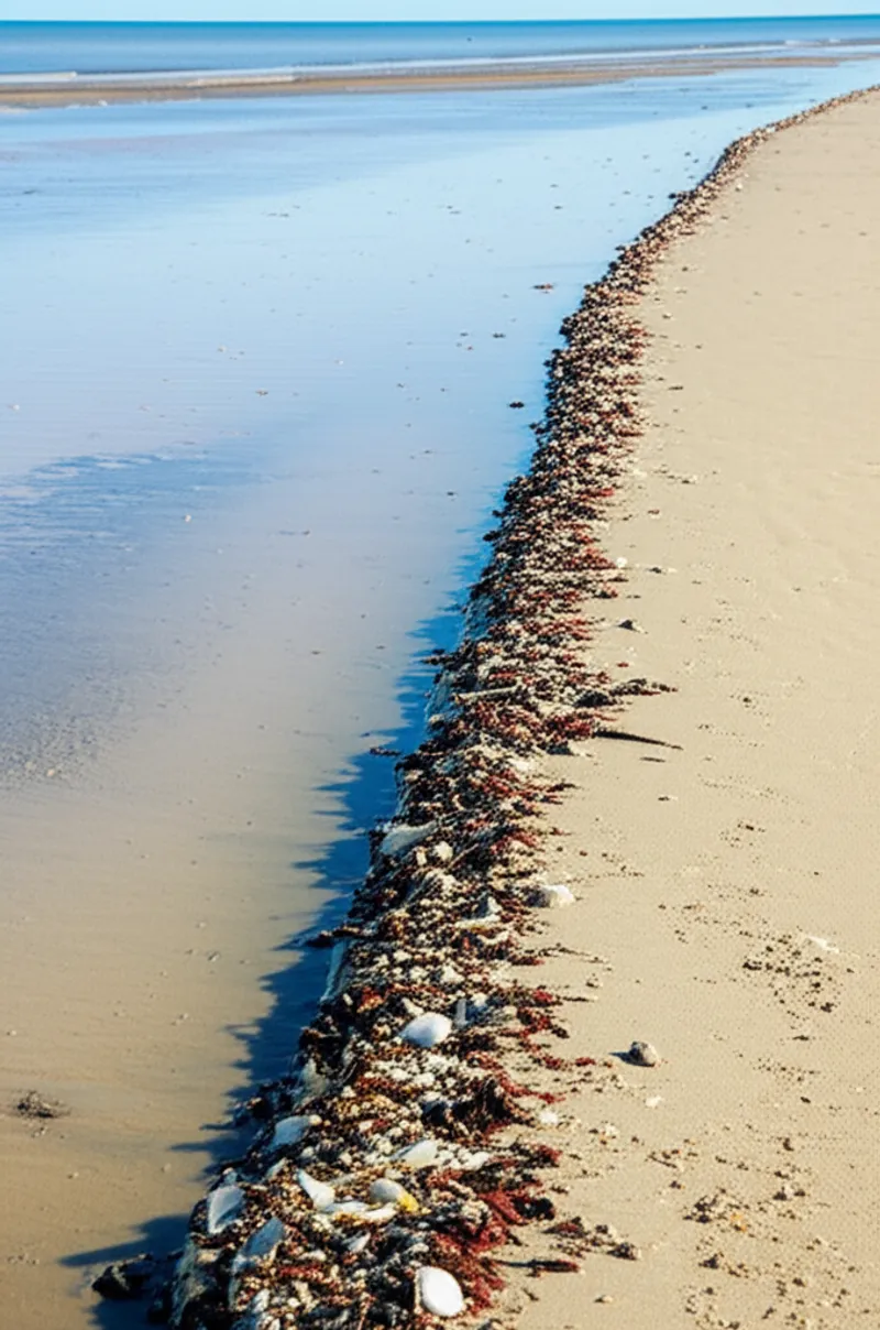 noun Скачать 🔗Поделиться Линия прилива, отметка прилива A line (of seaweed or differently coloured sand etc) on the shore showing the level of high or low tide Examples : "After the storm, a dark tidemark of seaweed showed how high the waves had reached on the beach. " После шторма темная линия прилива из водорослей показала, как высоко волны поднялись на пляже. environment geography geology nature ocean nautical place weather Чат с ИИИгра со словамиПрактика чтения