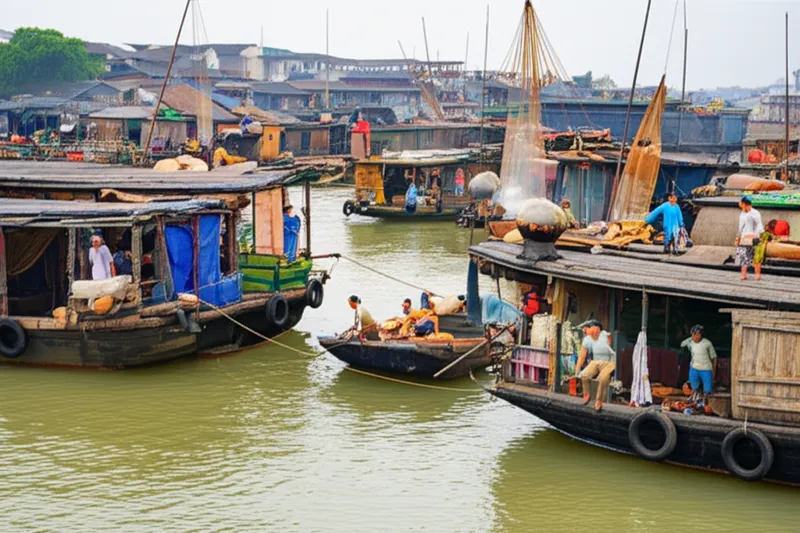 Bến cảng nhộn nhịp đầy những loại thuyền khác nhau, bao gồm cả vài chiếc thuyền kiểu Trung Quốc (tankas) đang được những người phụ nữ chèo lái khéo léo để mời du khách đi dạo.