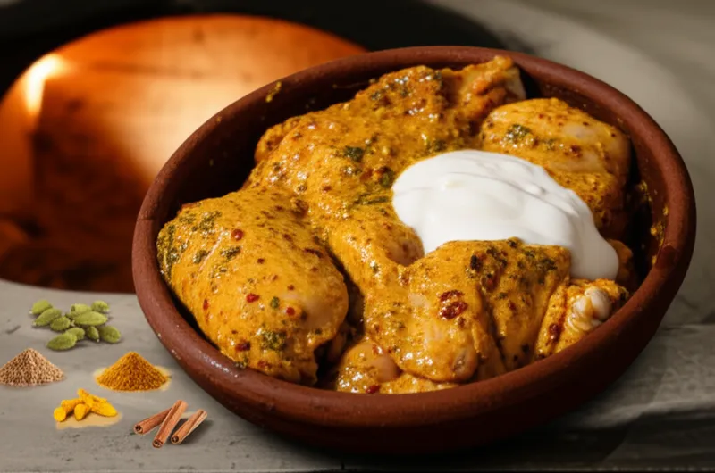 noun Tải xuống 🔗Chia sẻ Tikka, hỗn hợp gia vị ướp thịt kiểu Ấn. A marinade made from various aromatic spices usually with a yoghurt base; often used in Indian cuisine prior to grilling in a tandoor. Ví dụ : "My mom used a special tikka to marinate the chicken before grilling it for our family barbecue. " Mẹ tôi dùng một loại tikka đặc biệt, tức là hỗn hợp gia vị ướp thịt kiểu Ấn, để ướp gà trước khi nướng cho bữa tiệc nướng của gia đình. food culture Chat với AIGame từ vựngLuyện đọc