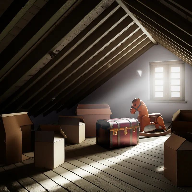 noun 下载 🔗分享 阁楼, 顶楼 The space, often unfinished and with sloped walls, directly below the roof in the uppermost part of a house or other building, generally used for storage or habitation. Examples : "We went up to the attic to look for the boxes containing our childhood keepsakes." 我们去了阁楼,想找装有我们童年纪念品的那些箱子。 architecture building property place 与AI对话词汇游戏阅读练习