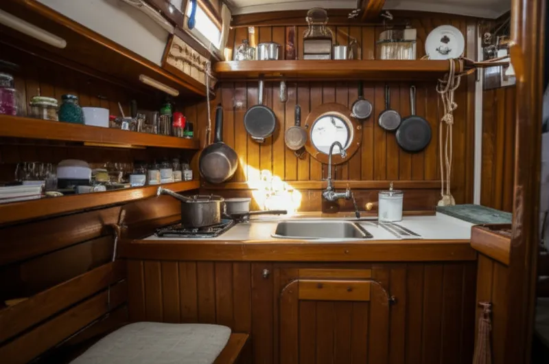 noun 下载 🔗分享 小船上的厨房, 船上炊事舱 A small galley or cookhouse on the deck of a small vessel. Examples : "The smell of frying fish drifted from the caboose, tempting the sailors working on the deck. " 从小船炊事舱里飘出煎鱼的味道,诱惑着在甲板上工作的船员们。(Cóng xiǎo chuán chuīshì cāng lǐ piāo chū jiān yú de wèidào, yòuhuòzhe zài jiǎbǎn shàng gōngzuò de chuányuánmen.) nautical sailing vehicle 与AI对话词汇游戏阅读练习