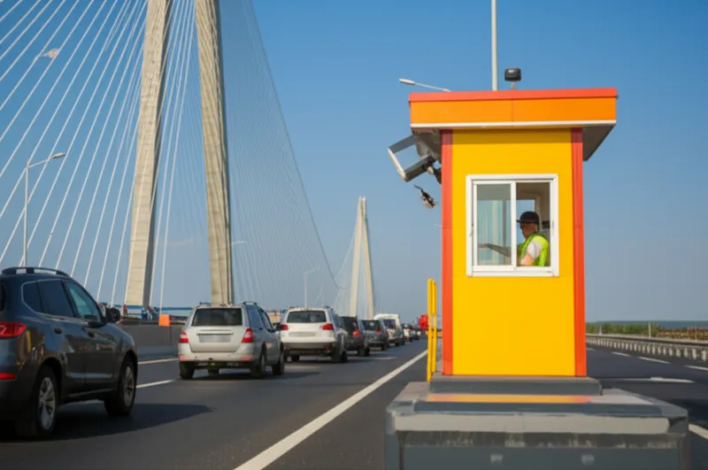 noun 下载 🔗分享 收费亭,关卡 A booth on a toll road or toll bridge where the toll is collected. Examples : "The driver stopped at the tolbooth to pay the fee for crossing the bridge. " 司机在收费亭停下来,支付了过桥费。 architecture building place commerce history 与AI对话词汇游戏阅读练习